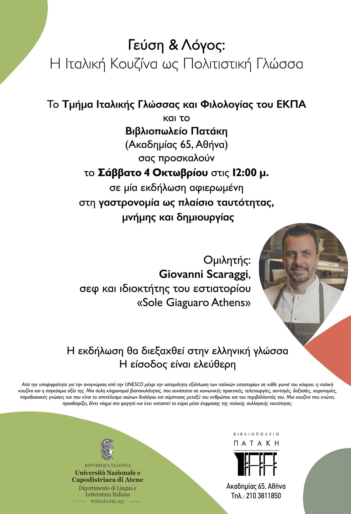 Ομιλητής: Giovanni Scaraggi, σεφ και ιδιοκτήτης του εστιατορίου «Sole Giaguaro Athens»