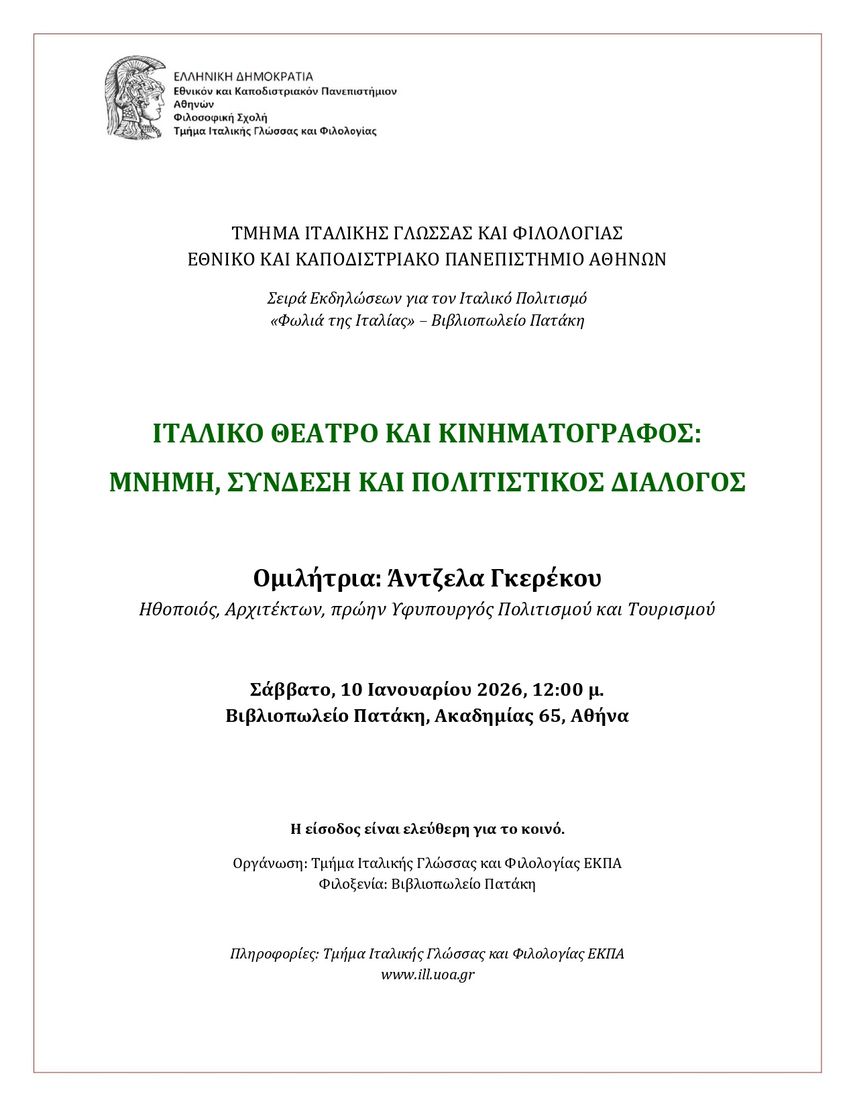 ΙΤΑΛΙΚΟ ΘΕΑΤΡΟ ΚΑΙ ΚΙΝΗΜΑΤΟΓΡΑΦΟΣ: ΜΝΗΜΗ, ΣΥΝΔΕΣΗ ΚΑΙ ΠΟΛΙΤΙΣΤΙΚΟΣ ΔΙΑΛΟΓΟΣ